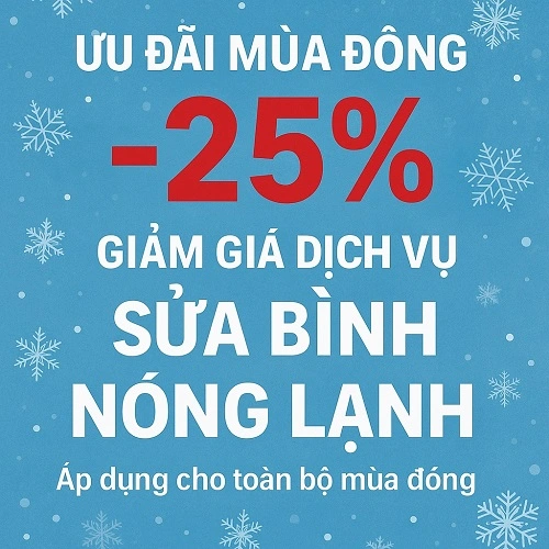 Mùa đông là thời điểm nhu cầu sử dụng thiết bị nước nóng tăng cao, vì vậy Alo247 triển khai chương trình giảm giá 25% cho toàn bộ dịch vụ sửa bình nóng lạnh nhằm hỗ trợ khách hàng kiểm tra và sửa chữa thiết bị sớm, đảm bảo an toàn khi sử dụng. Chương trình được áp dụng cho tất cả các phường tại Hà Nội, bao gồm kiểm tra lỗi, vệ sinh thanh đốt, xử lý rò nước và các hạng mục sửa chữa cần thiết khác.